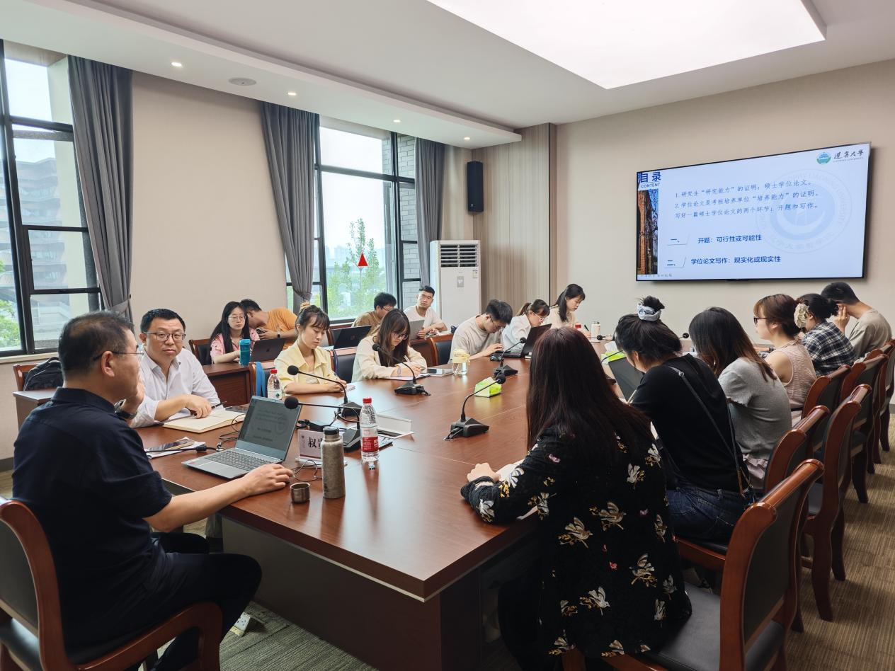 叔贵峰指出:硕士学位论文是研究生“研究能力”的证明、是考核培养单位“培养能力”的证明,写好一篇硕士学位论文要抓开题和写作这两个重要环节。首先他从论文选题、文献综述、论文结构、研究方法、创新性、参考文献等多个方面对开题报告进行了深入细致的讲解。其次,在论文正文写作环节,叔贵峰围绕符号使用、引用格式、语言表达、论据内容、行文逻辑等方面进行了深刻讲解,提醒大家要严格遵守学术规范,避免出现抄袭、剽窃等学术不端行为。