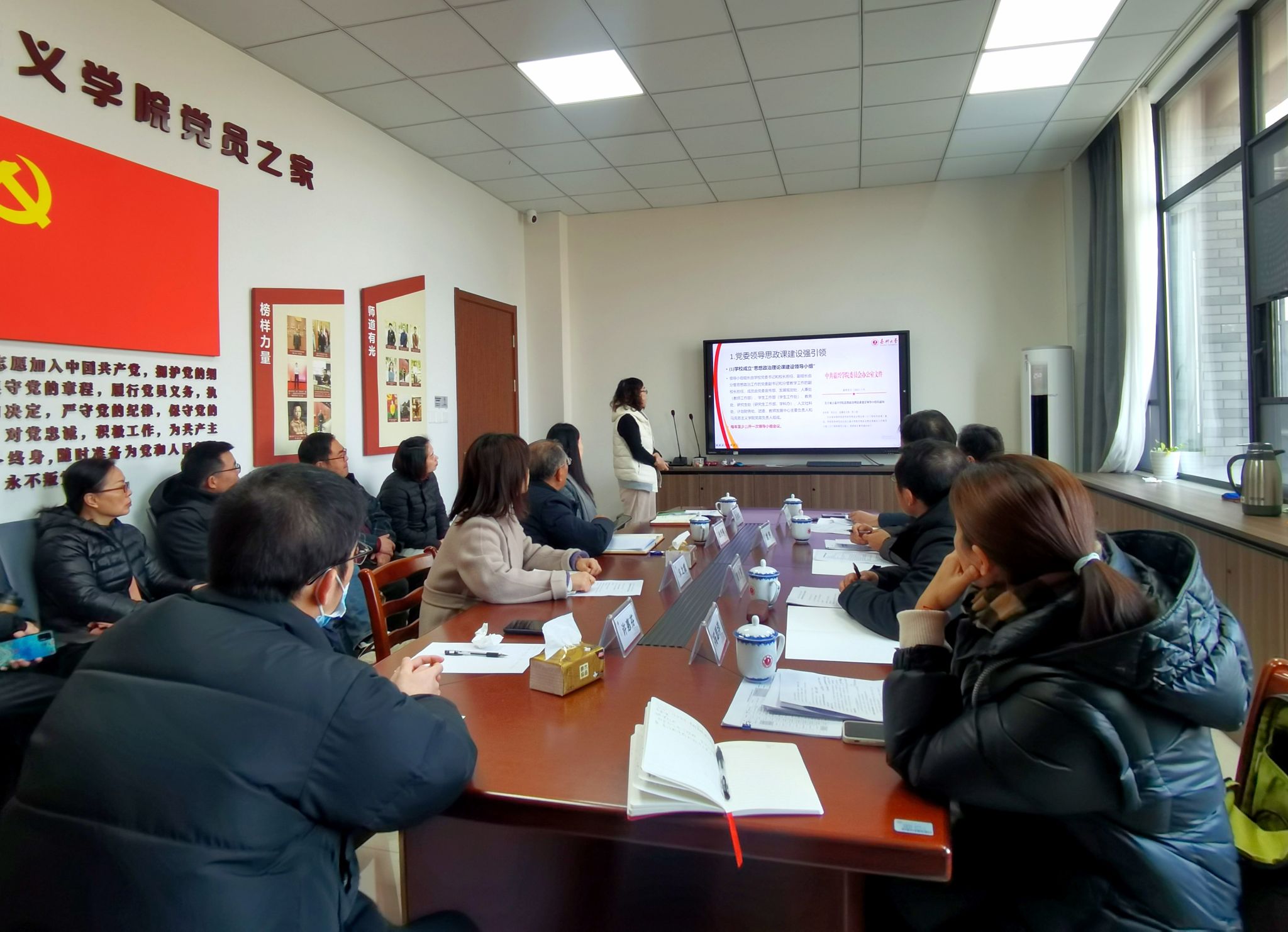 许惠芬代表学院做了“红船领航 特色立院 人才兴院 科研强院”的工作汇报和审核评估工作开展情况的汇报