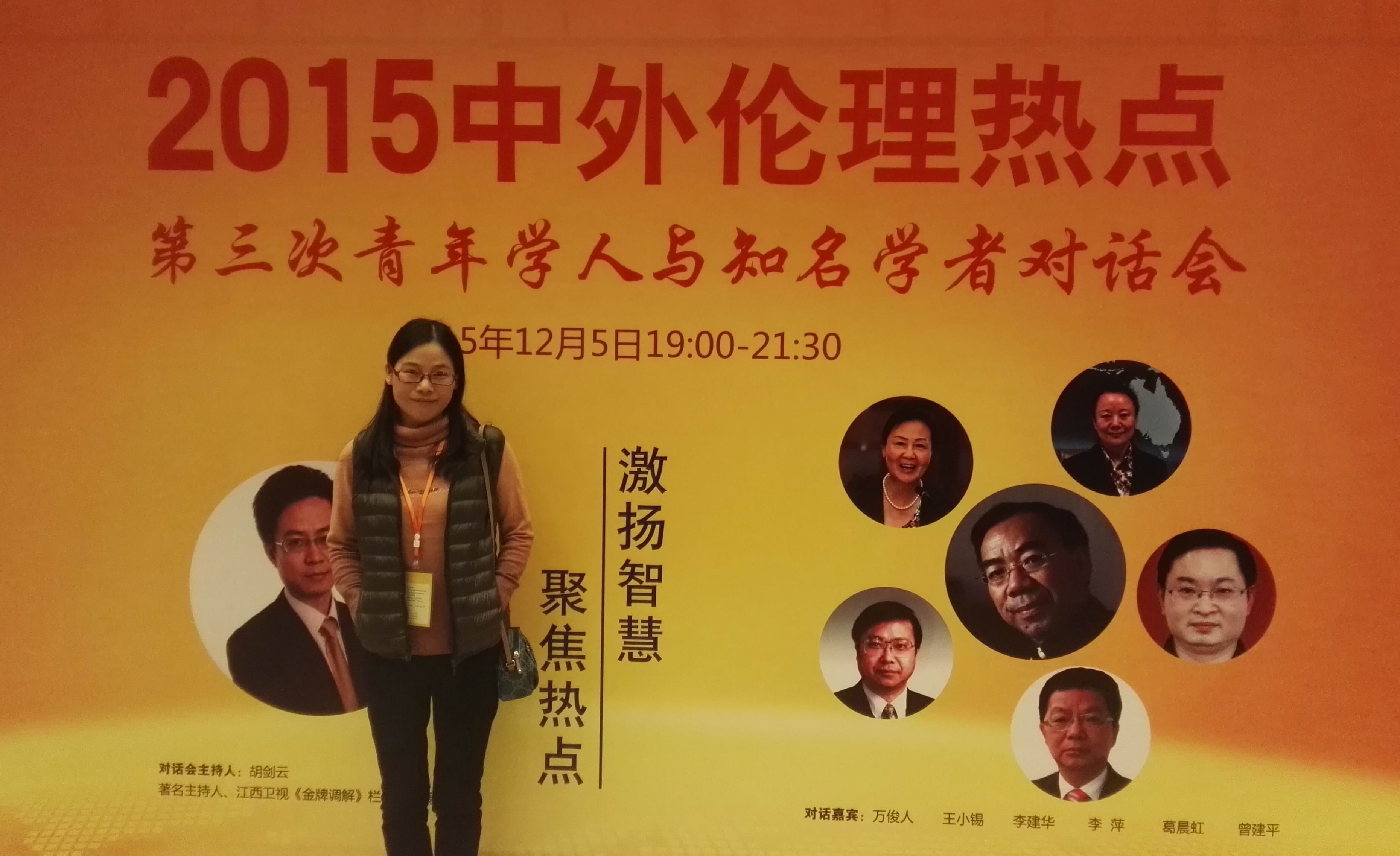 由中国伦理学会主办,清华大学道德与宗教研究所、中国人民大学伦理学与道德建设研究中心、中南大学、南京师范大学、广东伦理学会、井冈山大学协办的中国伦理学2015年年会于年12月4日至6日在北京京西宾馆召开。来自全国各高校的专家学者参加了此次盛会,思政部博士许惠芬出席了这次中国伦理学年会。