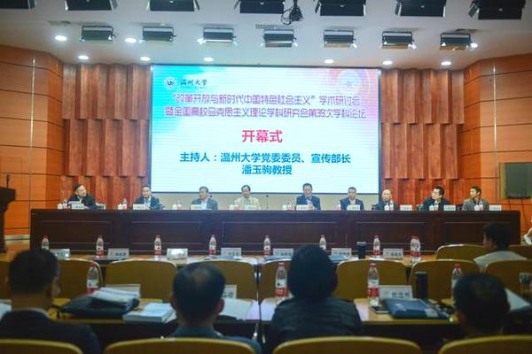 、浙江省马克思主义中国化研究会承办的“改革开放与新时代中国特色社会主义”学术研讨会暨全国高校马克思主义理论学科研究会第39次学科论坛在温州大学隆重举行。来自清华大学、南开大学、复旦大学、中山大学、上海交通大学、山东大学等全国近70所高校的200多位专家学者和温大师生参加了此次会议,收到论文近百篇。温州大学党委委员、宣传部长潘玉驹教授主持开幕式,温州大学党委副书记牟德刚教授、全国高校马克思主义理论学科研究会副会长、中山大学钟明华教授分别致辞。