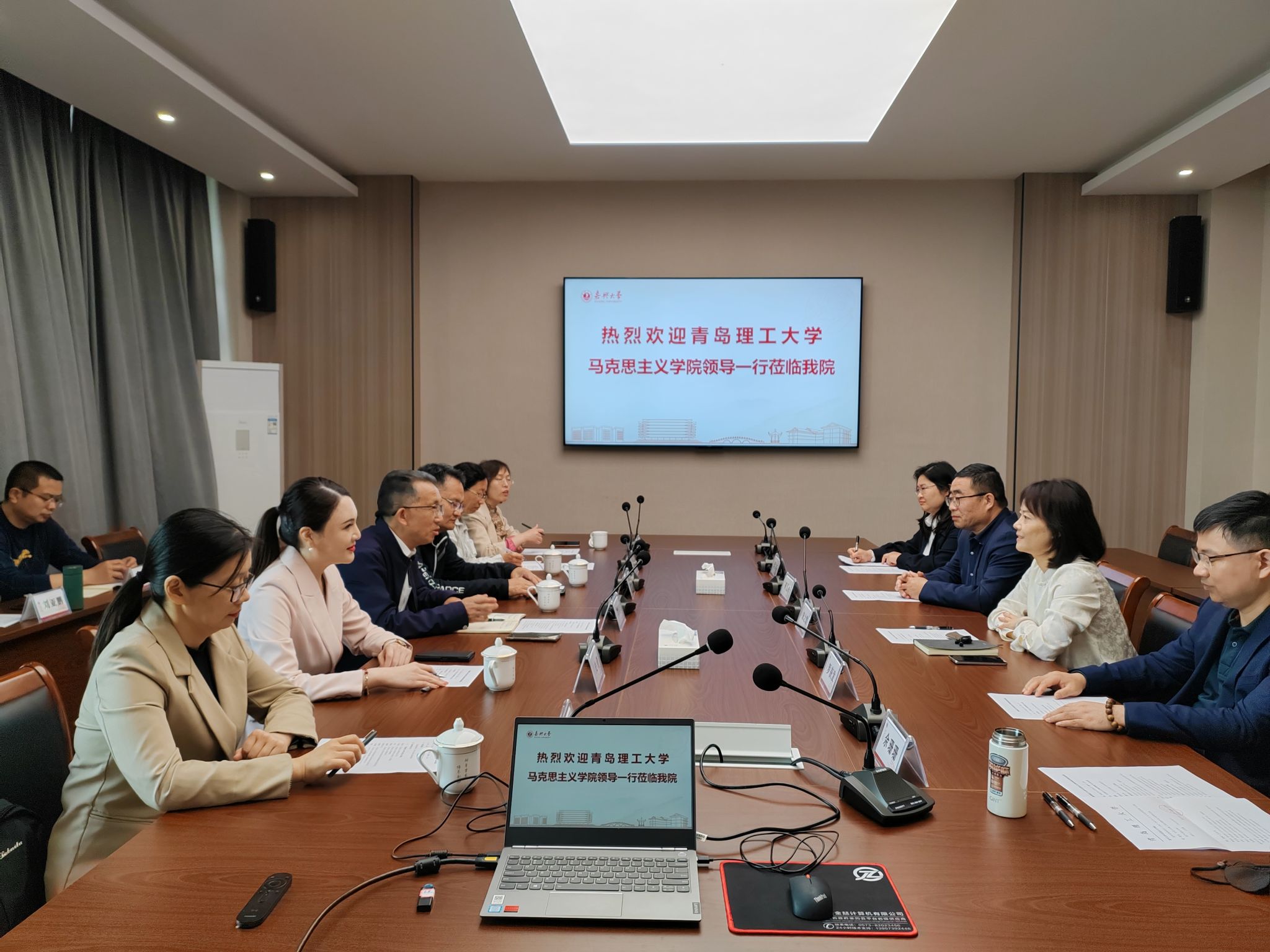 4月20日上午,青岛理工大学偷拍自拍 书记陈国庆、副院长李龙强一行10人到偷拍自拍 交流座谈。偷拍自拍 书记宋之霞、高凡夫教授及部分教研室主任参加了座谈。