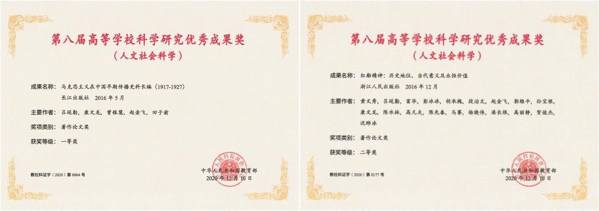 2020年中心两项成果分获第八届全国高等学校科学研究优秀成果奖(人文社会科学)一、二等奖。