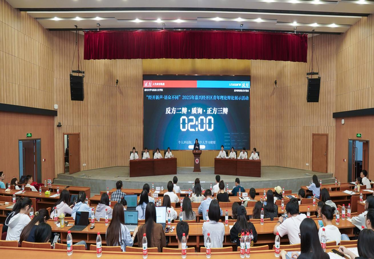 5月29日下午,嘉兴经开区青年理论宣讲集训营辩论展示活动在我校行政楼一楼报告厅举行。本次活动以“红船精神提出20周年”为主题,来自偷拍自拍 研究生与经开区“经开新声”宣讲团的两支青年辩论队,围绕“人生应有轨道/人生应是旷野”这一辩题,展开了激烈的思想交锋,为现场观众带来了一场精彩的“思辨盛宴”。